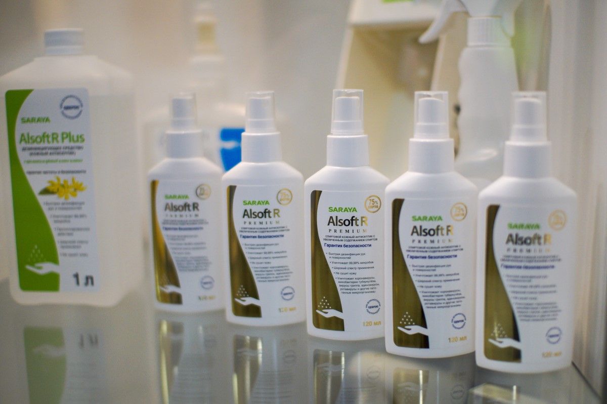 Кроме того, посетители конгресса могли ознакомиться на стенде Saraya с продукцией компании, которая уже зарекомендовала себя на рынке гигиенических продуктов, дезинфицирующих средств и дозаторов различного типа:
