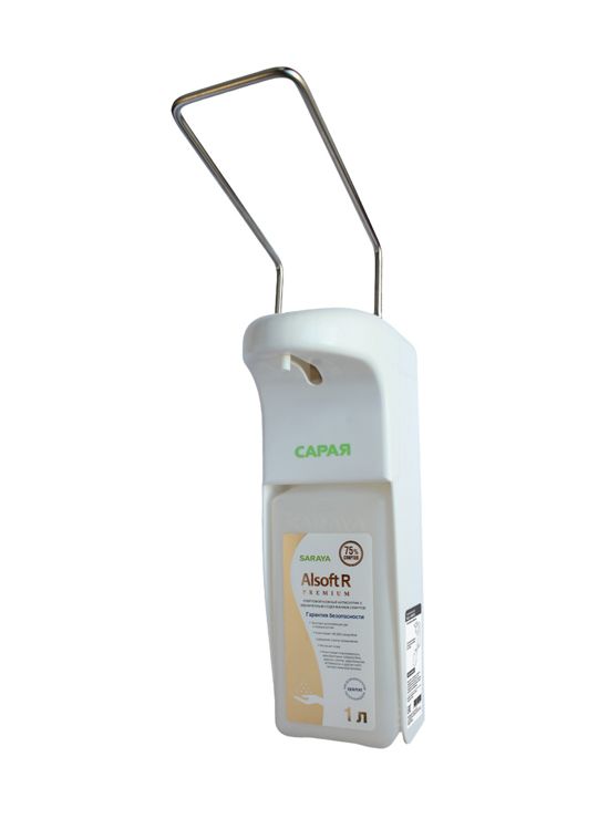 Предназначен для дозирования жидкого мыла и спиртового антисептика. Отсутствие прямого контакта ладони с дозатором. Подача жидкости осуществляется легким нажимом локтя на рычаг.