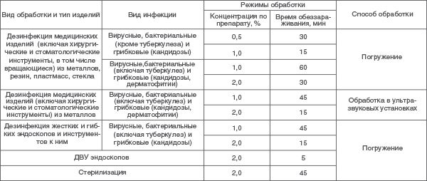 Режимы дезинфекции и стерилизации медицинских изделий рабочим раствором "Acecide Powder"