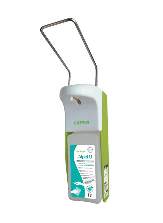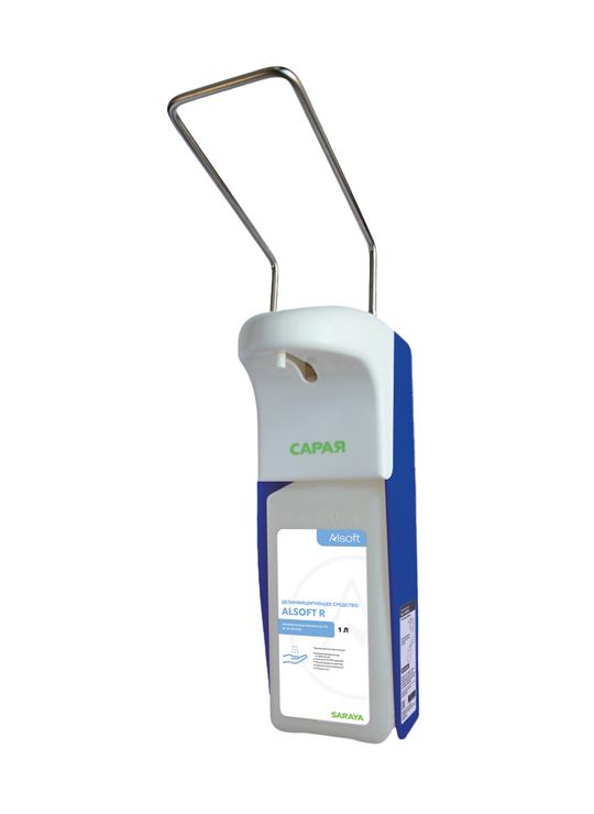 Предназначен для дозирования жидкого мыла и спиртового антисептика. Отсутствие прямого контакта ладони с дозатором. Подача жидкости осуществляется легким нажимом локтя на рычаг.